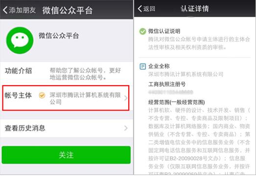 2、微信认证后,用户将在微信中看到微信认证特有的标识。